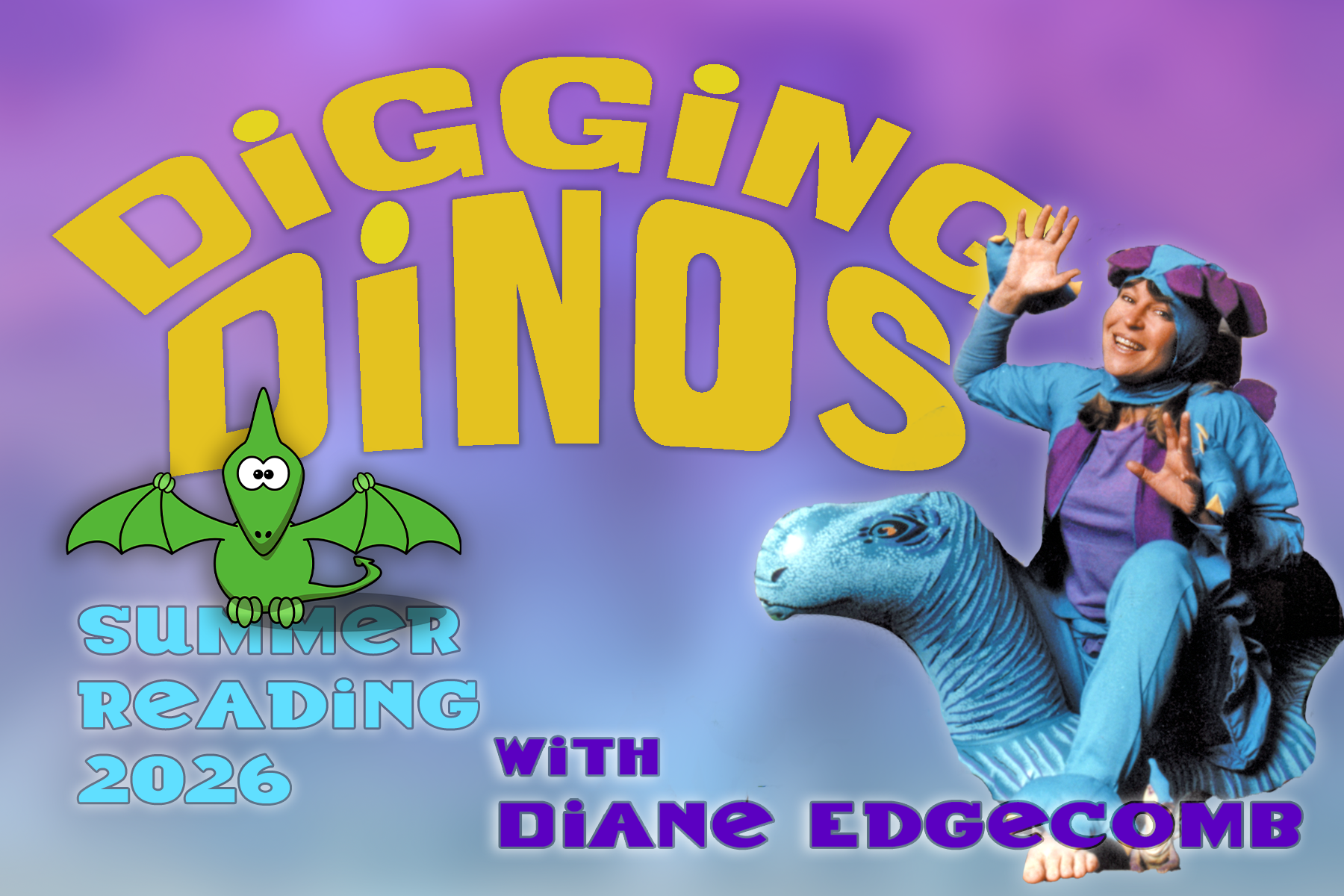 Don't miss this chance to warm up February vacation week with a whole performance filled with Dinosaur fun. Diane's Digging Dinosaurs show engages its young audiences with descriptive dinosaur information, colorful posters, sign language, and lively interactive stories. Free and open to all!